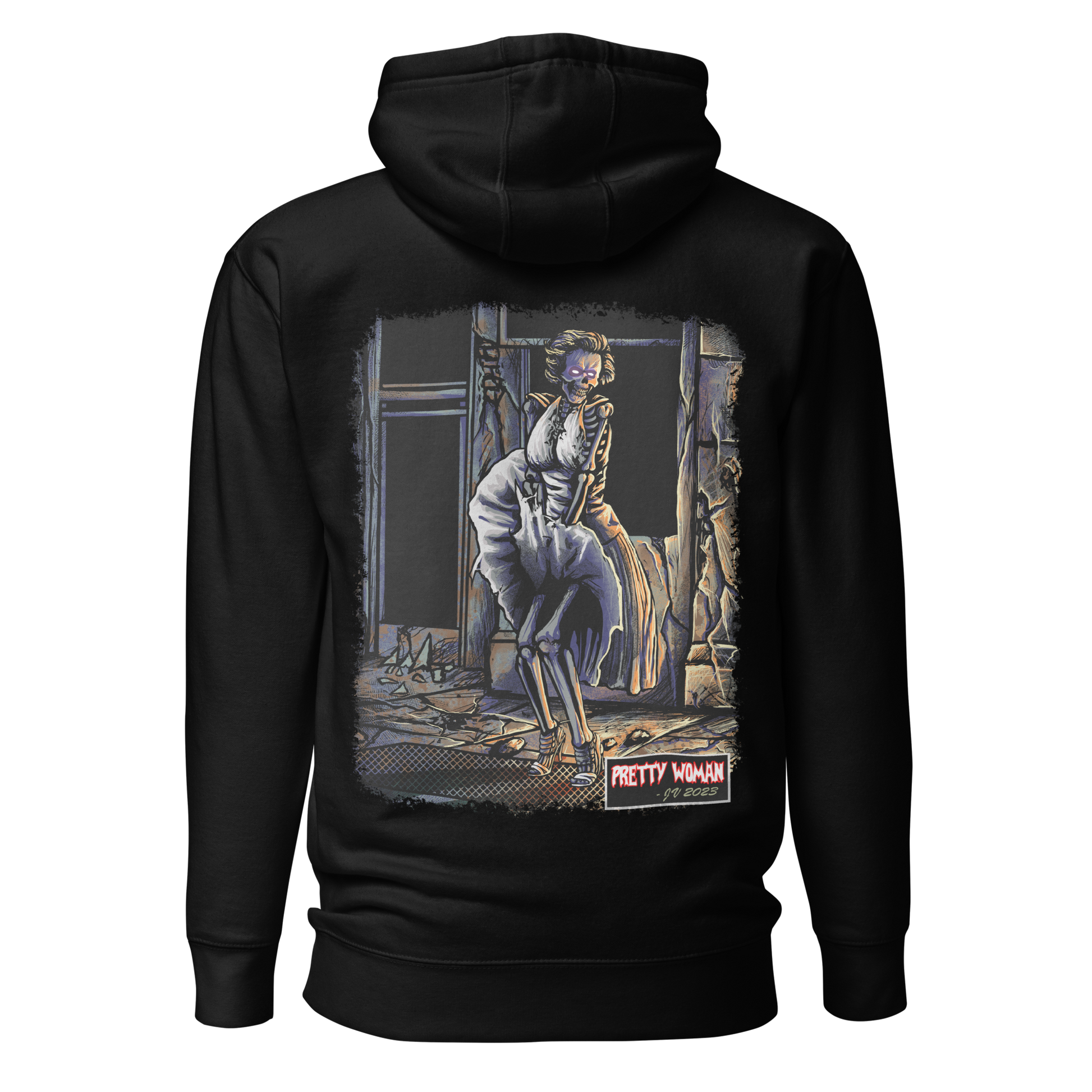 Klassinen unisex-huppari, jossa etutasku ja litteät kiristysnyörit.